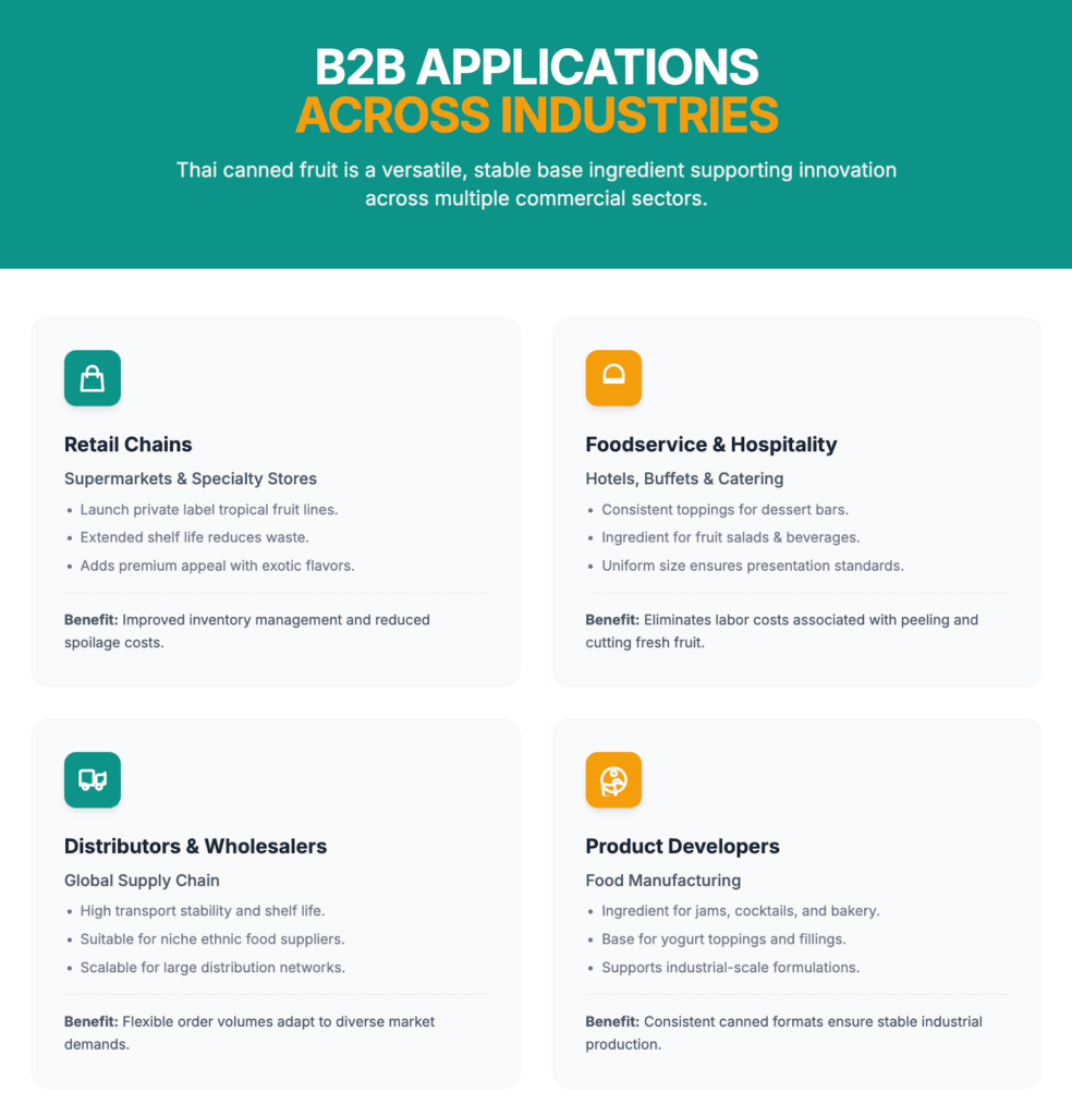 Thai canned fruit is not limited to retail shelves. Its applications span multiple B2B sectors.